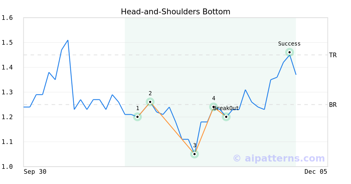 On November 13, 2025, A.I.dvisor detected a Head-and-Shoulders Bottom Pattern (Bullish) for Allogene Therapeutics (ALLO, $1.20). On November 13, 2025, A.I.dvisor confirmed the Bullish pattern, setting a target price of $1.45. 15 days later, on November 28, 2025, ALLO reached the target price resulting in a +2 for traders who took a long position in the stock.
