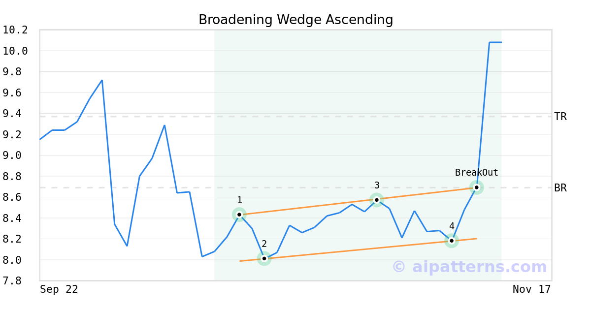 On November 10, 2025, A.I.dvisor detected a Broadening Wedge Ascending Pattern (Bullish) for Ambac Financial Group (AMBC, $8.69). On November 10, 2025, A.I.dvisor confirmed the Bullish pattern, setting a target price of $9.37. On November 10, 2025, AMBC reached the target price resulting in a for traders who took a long position in the stock.