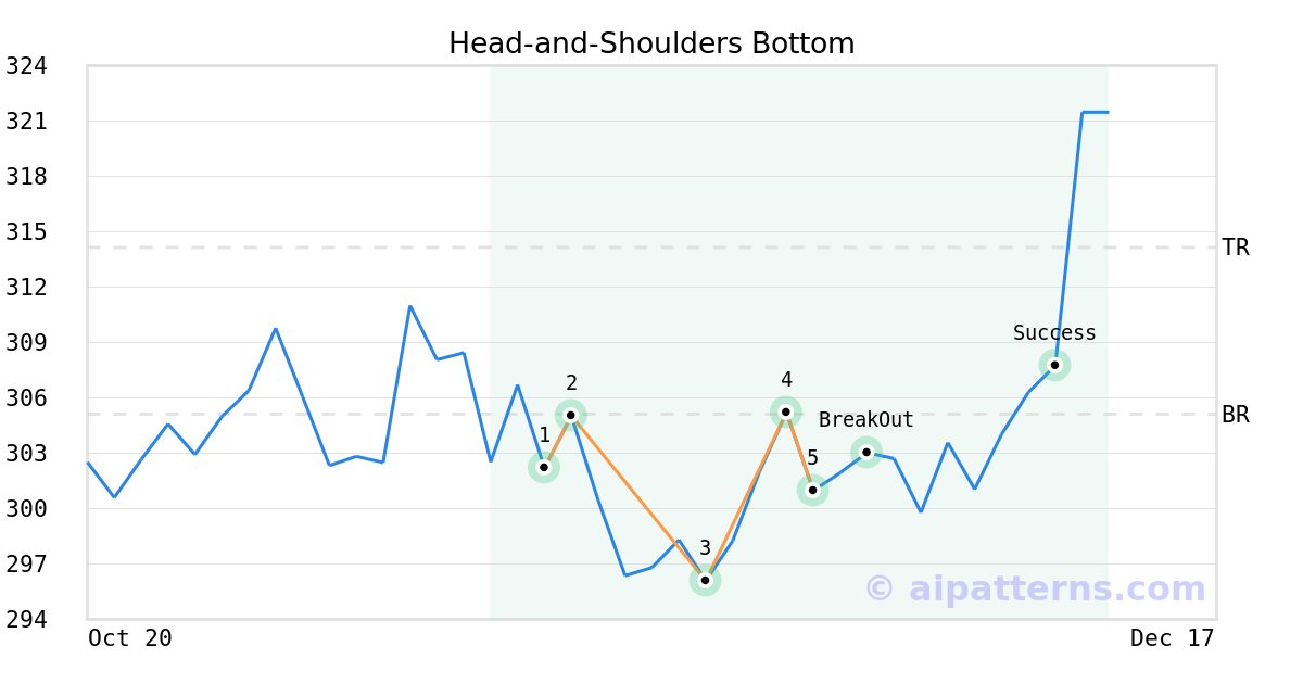 On November 26, 2025, A.I.dvisor detected a Head-and-Shoulders Bottom Pattern (Bullish) for Grupo Aeroportuario del Sureste SA (ASR, $300.97). On December 01, 2025, A.I.dvisor confirmed the Bullish pattern, setting a target price of $314.15. 9 days later, on December 10, 2025, ASR reached the target price resulting in a for traders who took a long position in the stock.