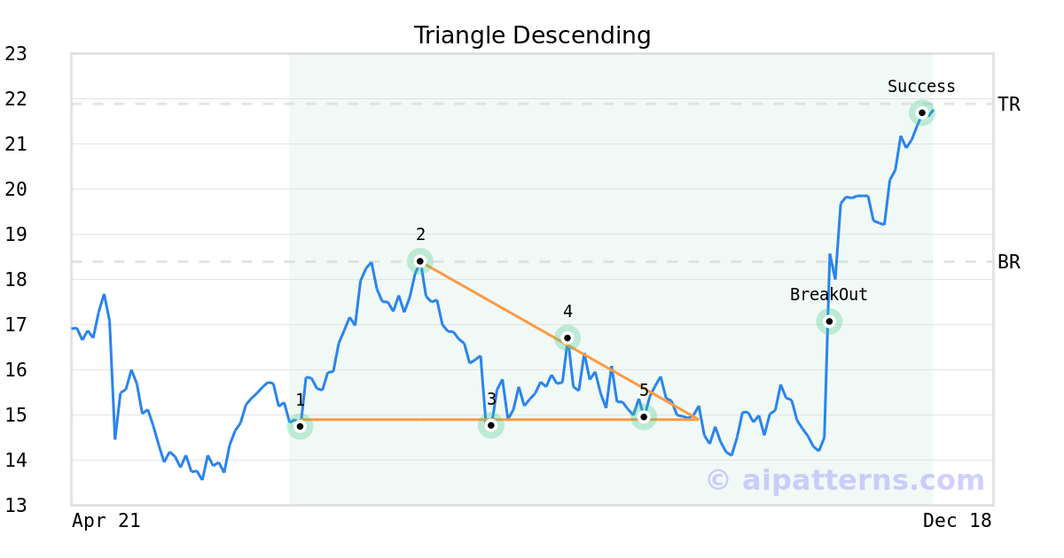 On September 19, 2025, A.I.dvisor detected a Triangle Descending Pattern (Bullish) for ATN International (ATNI, $14.95). On November 06, 2025, A.I.dvisor confirmed the Bullish pattern, setting a target price of $21.89. 26 days later, on December 02, 2025, ATNI reached the target price resulting in a +4 for traders who took a long position in the stock.