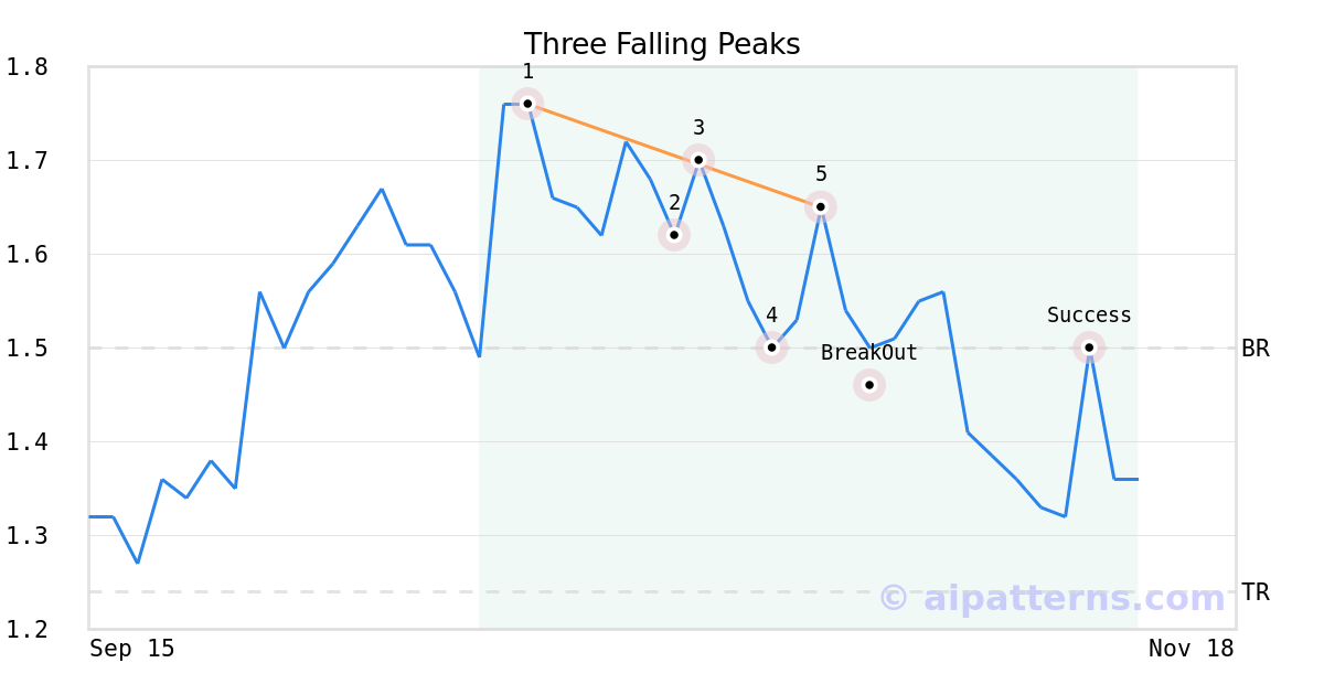 On October 27, 2025, A.I.dvisor detected a Three Falling Peaks Pattern (Bearish) for Autolus Therapeutics plc (AUTL, $1.65). 2 days later, on October 29, 2025, A.I.dvisor confirmed the Bearish pattern, setting a target price of the stock. On November 11, 2025, the stock hit the target price of $1.24 – resulting in a gain for traders who shorted the stock on the pattern detection date.