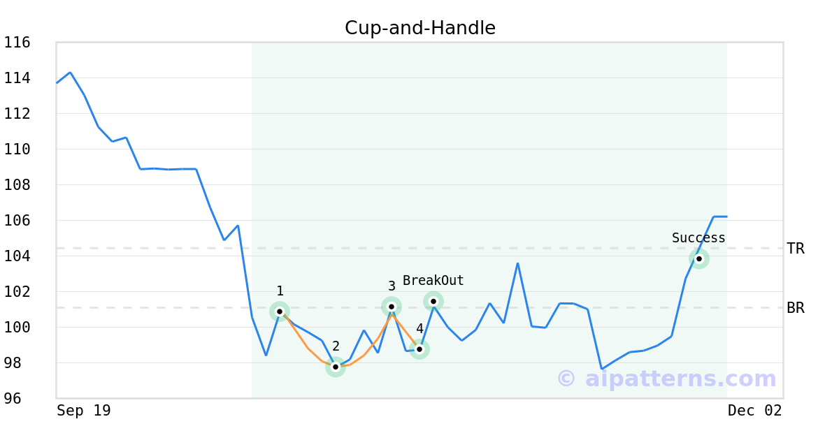 On October 27, 2025, A.I.dvisor detected a Cup-and-Handle Pattern (Bullish) for AZZ (AZZ, $98.74). On October 28, 2025, A.I.dvisor confirmed the Bullish pattern, setting a target price of $104.44. 27 days later, on November 24, 2025, AZZ reached the target price resulting in a for traders who took a long position in the stock.