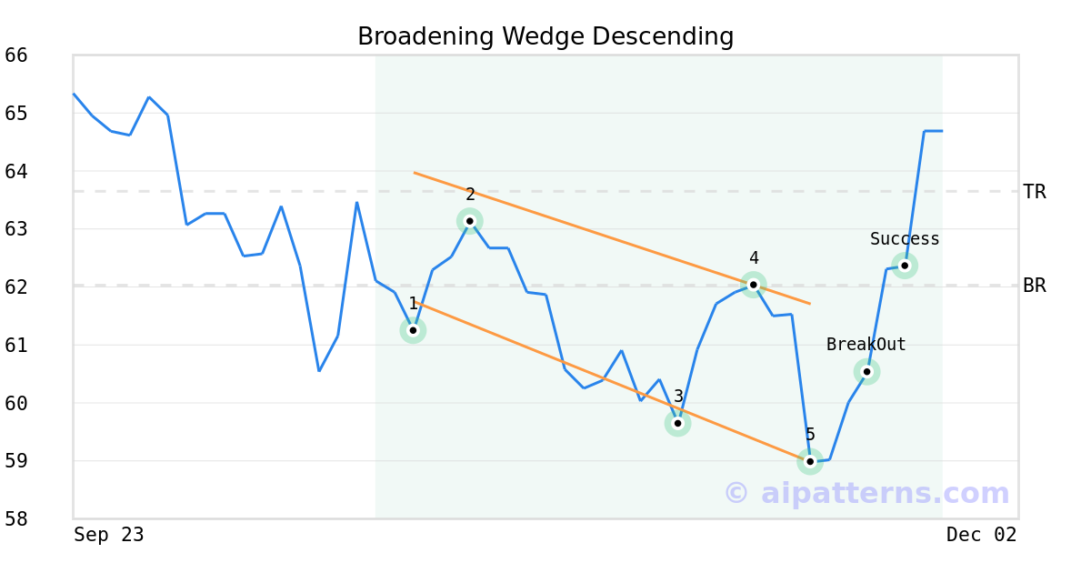 On November 17, 2025, A.I.dvisor detected a Broadening Wedge Descending Pattern (Bullish) for Banner Corp (BANR, $58.98). On November 20, 2025, A.I.dvisor confirmed the Bullish pattern, setting a target price of $63.65. 4 days later, on November 24, 2025, BANR reached the target price resulting in a for traders who took a long position in the stock.