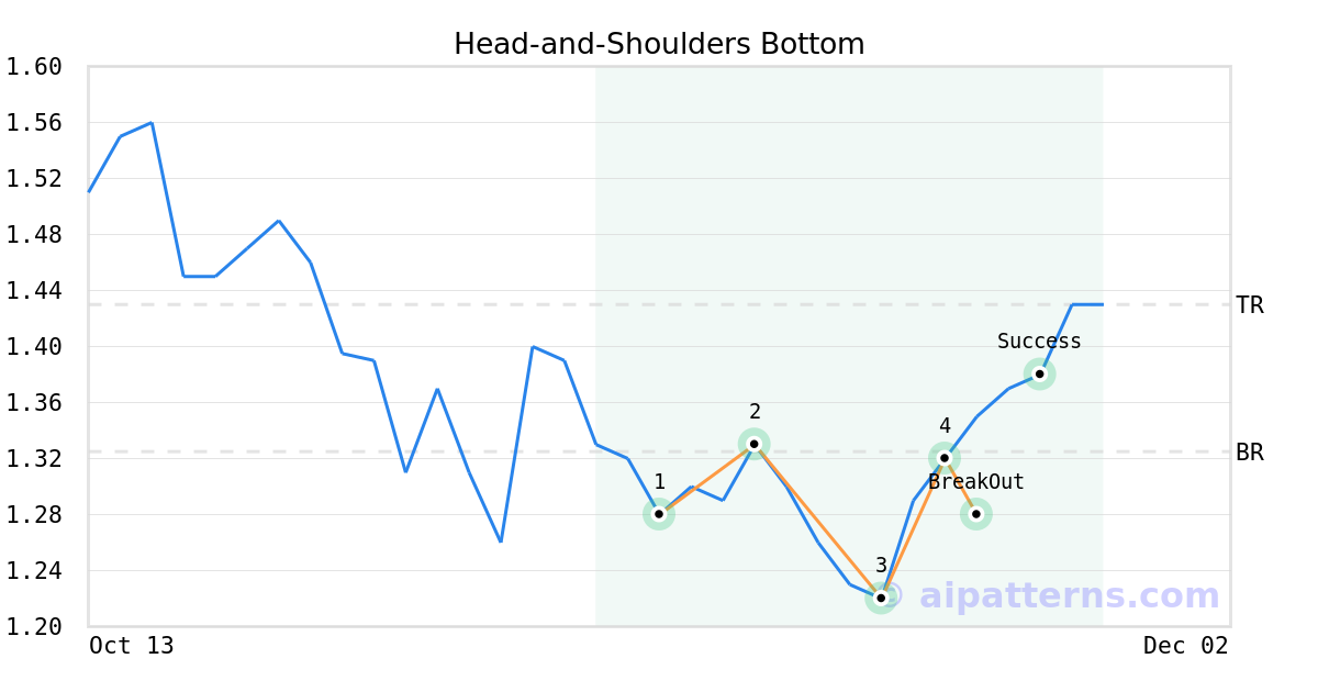 On November 20, 2025, A.I.dvisor detected a Head-and-Shoulders Bottom Pattern (Bullish) for BioCardia Inc. (BCDA, $1.28). On November 20, 2025, A.I.dvisor confirmed the Bullish pattern, setting a target price of $1.43. 4 days later, on November 24, 2025, BCDA reached the target price resulting in a for traders who took a long position in the stock.