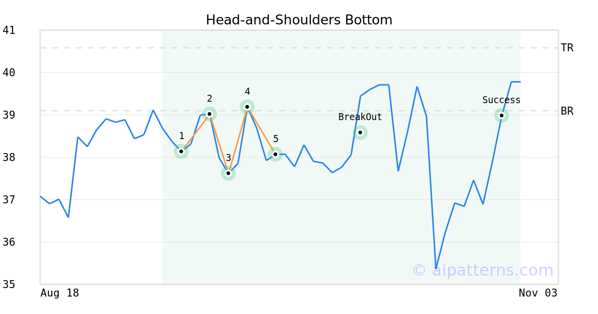 On September 23, 2025, A.I.dvisor detected a Head-and-Shoulders Bottom Pattern (Bullish) for Bankunited (BKU, $38.06). On October 06, 2025, A.I.dvisor confirmed the Bullish pattern, setting a target price of $40.58. 21 days later, on October 27, 2025, BKU reached the target price resulting in a for traders who took a long position in the stock.