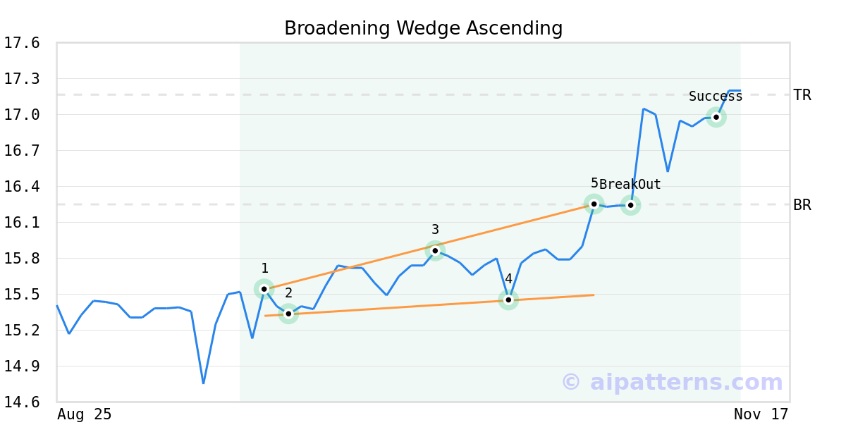On October 27, 2025, A.I.dvisor detected a Broadening Wedge Ascending Pattern (Bullish) for Bank of the James Financial Group (BOTJ, $16.25). On October 30, 2025, A.I.dvisor confirmed the Bullish pattern, setting a target price of $17.17. 11 days later, on November 10, 2025, BOTJ reached the target price resulting in a for traders who took a long position in the stock.