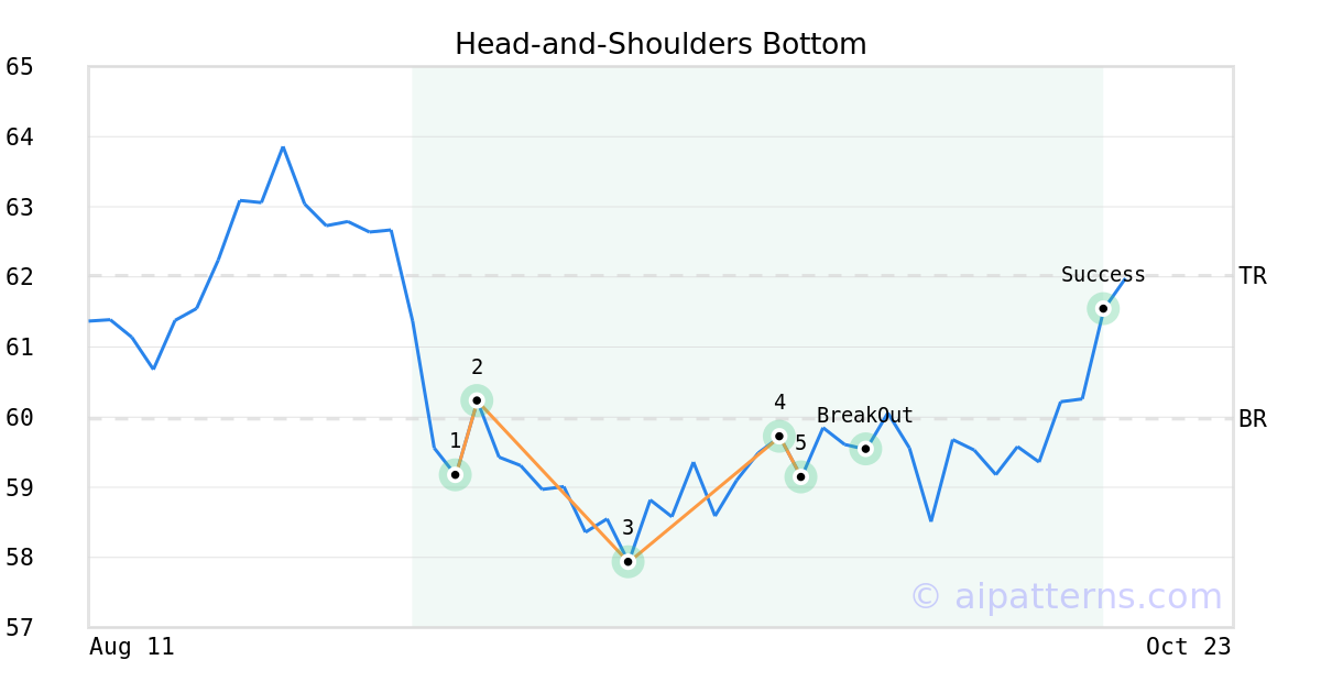 On September 26, 2025, A.I.dvisor detected a Head-and-Shoulders Bottom Pattern (Bullish) for Anheuser-Busch INBEV SA/NV (BUD, $59.14). On October 01, 2025, A.I.dvisor confirmed the Bullish pattern, setting a target price of $62.02. 15 days later, on October 16, 2025, BUD reached the target price resulting in a for traders who took a long position in the stock.