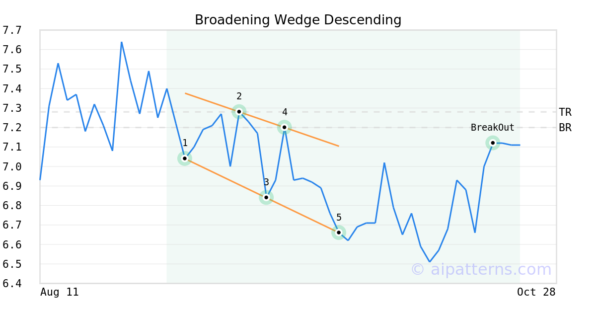On September 26, 2025, A.I.dvisor detected a Broadening Wedge Descending Pattern (Bullish) for Bioventus (BVS, $6.66). On October 21, 2025, A.I.dvisor confirmed the Bullish pattern, setting a target price of $7.28. On October 21, 2025, BVS reached the target price resulting in a for traders who took a long position in the stock.