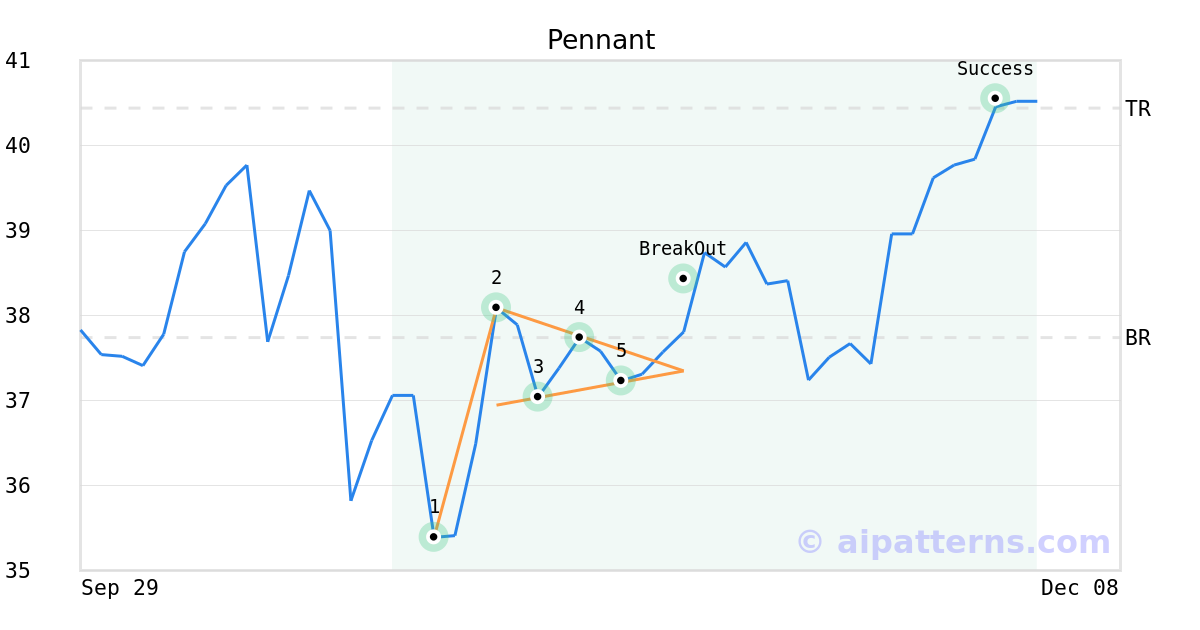 On November 04, 2025, A.I.dvisor detected a Pennant Pattern (Bullish) for Cadence Bank (CADE, $37.23). On November 07, 2025, A.I.dvisor confirmed the Bullish pattern, setting a target price of $40.44. 24 days later, on December 01, 2025, CADE reached the target price resulting in a for traders who took a long position in the stock.