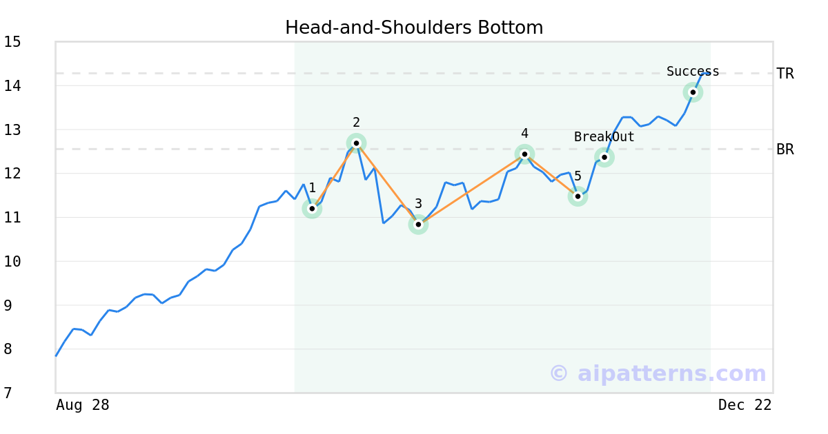 On November 20, 2025, A.I.dvisor detected a Head-and-Shoulders Bottom Pattern (Bullish) for Centerra Gold (CGAU, $11.47). On November 25, 2025, A.I.dvisor confirmed the Bullish pattern, setting a target price of $14.28. 15 days later, on December 10, 2025, CGAU reached the target price resulting in a +2 for traders who took a long position in the stock.