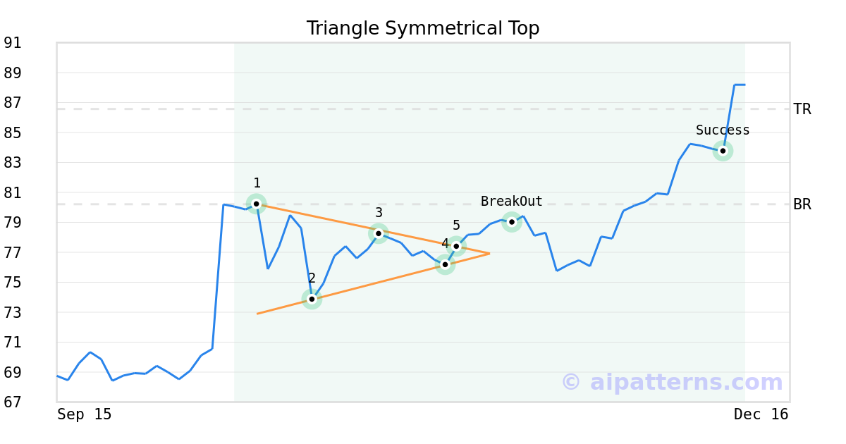 On November 04, 2025, A.I.dvisor detected a Triangle Symmetrical Top Pattern (Bullish) for Comerica (CMA, $77.38). On November 11, 2025, A.I.dvisor confirmed the Bullish pattern, setting a target price of $86.57. 28 days later, on December 09, 2025, CMA reached the target price resulting in a for traders who took a long position in the stock.