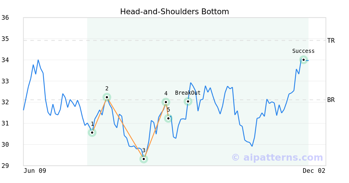 On September 03, 2025, A.I.dvisor detected a Head-and-Shoulders Bottom Pattern (Bullish) for Canadian Natural Resources Limited (CNQ, $31.23). On September 15, 2025, A.I.dvisor confirmed the Bullish pattern, setting a target price of $34.92. 65 days later, on November 19, 2025, CNQ reached the target price resulting in a for traders who took a long position in the stock.