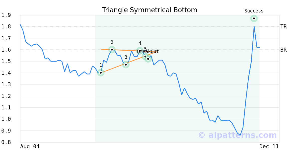 On October 07, 2025, A.I.dvisor detected a Triangle Symmetrical Bottom Pattern (Bullish) for Caesarstone Ltd (CSTE, $1.54). On October 08, 2025, A.I.dvisor confirmed the Bullish pattern, setting a target price of $1.80. 54 days later, on December 01, 2025, CSTE reached the target price resulting in a +2 for traders who took a long position in the stock.