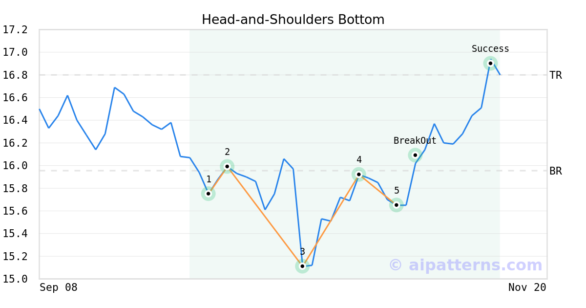 On October 30, 2025, A.I.dvisor detected a Head-and-Shoulders Bottom Pattern (Bullish) for Citizens Community Bancorp (CZWI, $15.65). On November 03, 2025, A.I.dvisor confirmed the Bullish pattern, setting a target price of $16.80. 10 days later, on November 13, 2025, CZWI reached the target price resulting in a for traders who took a long position in the stock.