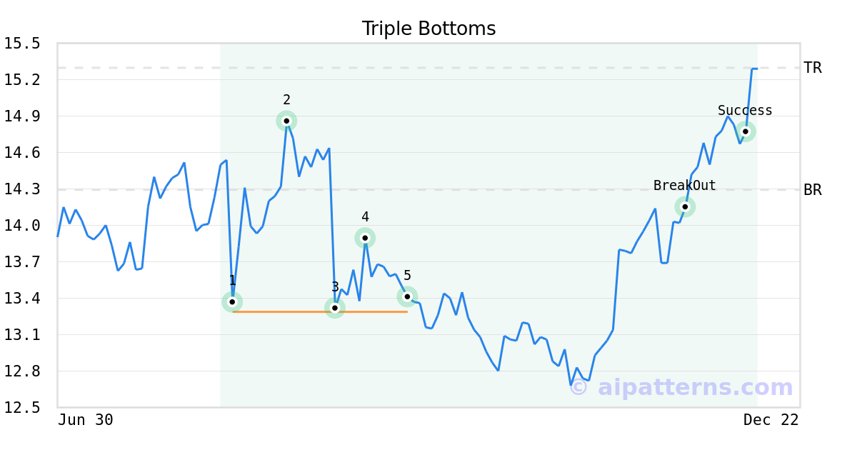 On September 22, 2025, A.I.dvisor detected a Triple Bottoms Pattern (Bullish) for Dole plc (DOLE, $13.41). On November 25, 2025, A.I.dvisor confirmed the Bullish pattern, setting a target price of $15.30. 15 days later, on December 10, 2025, DOLE reached the target price resulting in a +1 for traders who took a long position in the stock.