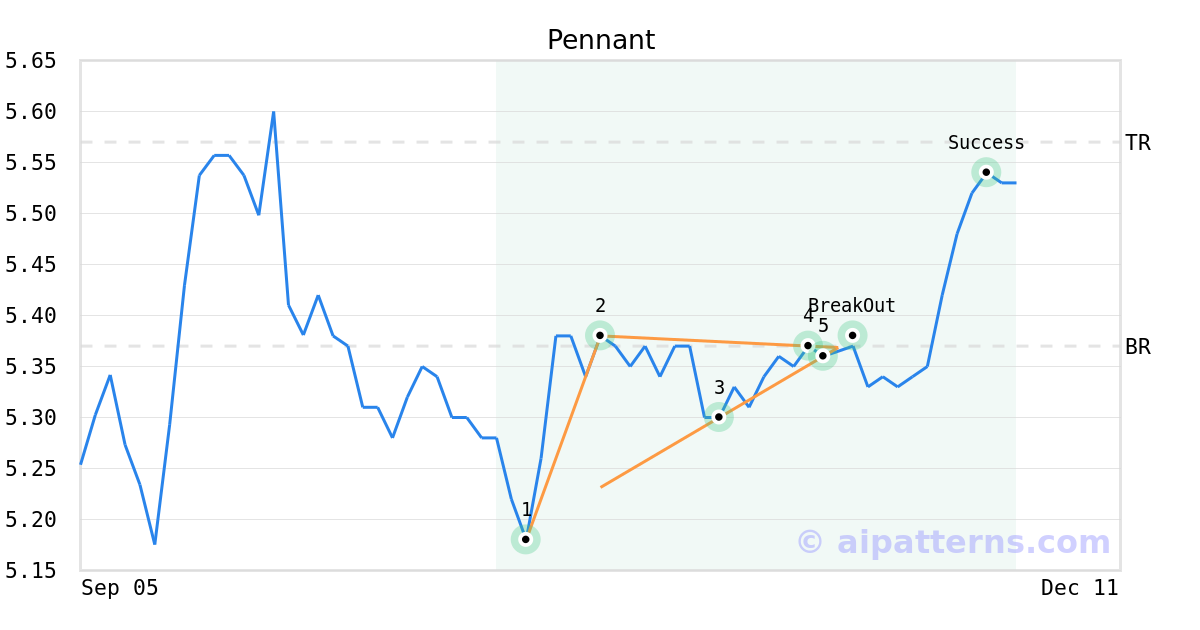 On November 14, 2025, A.I.dvisor detected a Pennant Pattern (Bullish) for Morgan Stanley Emerging Markets Domestic Debt Fund (EDD, $5.36). On November 17, 2025, A.I.dvisor confirmed the Bullish pattern, setting a target price of $5.57. 14 days later, on December 01, 2025, EDD reached the target price resulting in a for traders who took a long position in the stock.