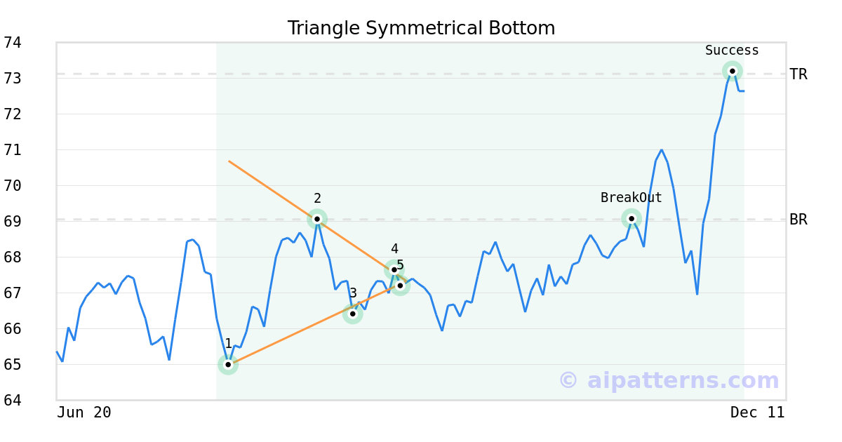 On September 12, 2025, A.I.dvisor detected a Triangle Symmetrical Bottom Pattern (Bullish) for iShares MSCI Ireland ETF (EIRL, $67.19). On November 05, 2025, A.I.dvisor confirmed the Bullish pattern, setting a target price of $73.12. 26 days later, on December 01, 2025, EIRL reached the target price resulting in a for traders who took a long position in the stock.