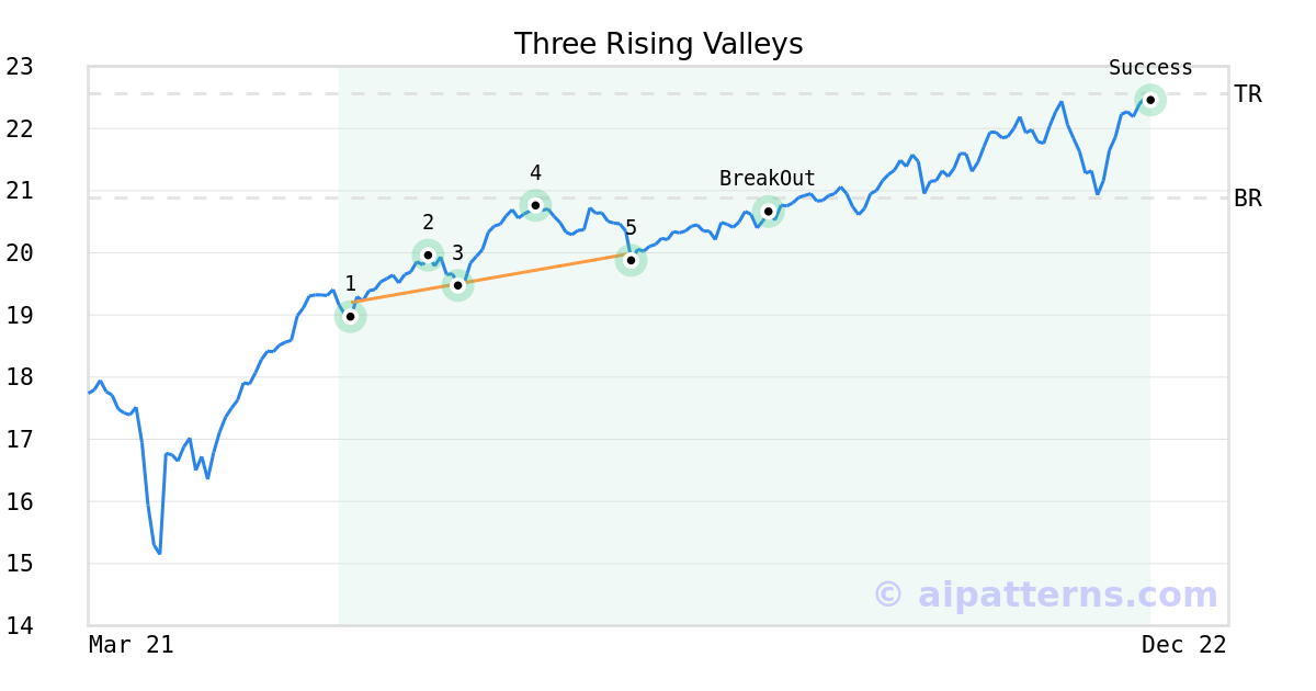 On August 01, 2025, A.I.dvisor detected a Three Rising Valleys Pattern (Bullish) for Eaton Vance Tax-Advantaged Global Dividend Income Fund (ETG, $19.87). On September 04, 2025, A.I.dvisor confirmed the Bullish pattern, setting a target price of $22.56. 91 days later, on December 04, 2025, ETG reached the target price resulting in a +1 for traders who took a long position in the stock.