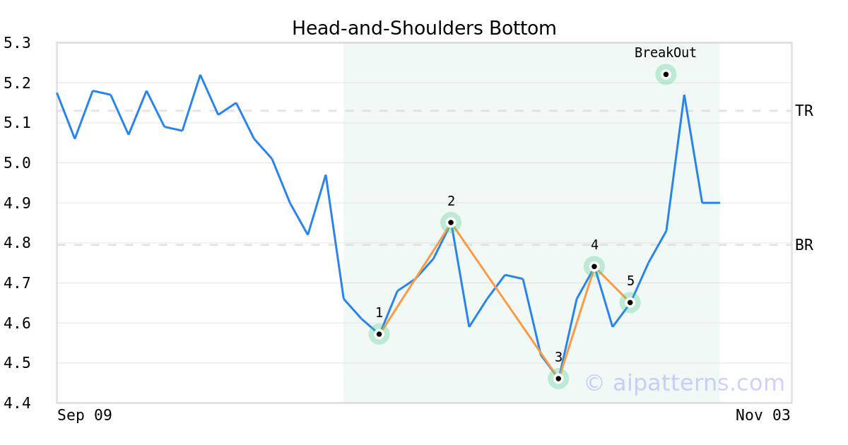 On October 23, 2025, A.I.dvisor detected a Head-and-Shoulders Bottom Pattern (Bullish) for Evoke Pharma, Inc. (EVOK, $4.65). On October 27, 2025, A.I.dvisor confirmed the Bullish pattern, setting a target price of $5.13. On October 27, 2025, EVOK reached the target price resulting in a +1 for traders who took a long position in the stock.