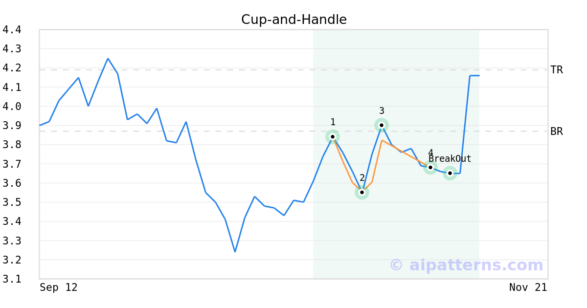 On November 07, 2025, A.I.dvisor detected a Cup-and-Handle Pattern (Bullish) for European Wax Center (EWCZ, $3.68). On November 11, 2025, A.I.dvisor confirmed the Bullish pattern, setting a target price of $4.19. On November 11, 2025, EWCZ reached the target price resulting in a for traders who took a long position in the stock.