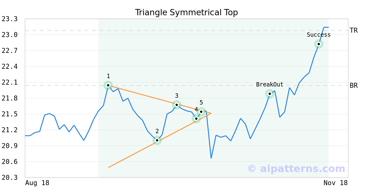 On October 08, 2025, A.I.dvisor detected a Triangle Symmetrical Top Pattern (Bullish) for iShares MSCI Hong Kong ETF (EWH, $21.54). On October 28, 2025, A.I.dvisor confirmed the Bullish pattern, setting a target price of $23.08. 14 days later, on November 11, 2025, EWH reached the target price resulting in a for traders who took a long position in the stock.