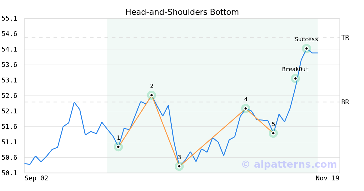 On November 04, 2025, A.I.dvisor detected a Head-and-Shoulders Bottom Pattern (Bullish) for iShares MSCI Italy ETF (EWI, $51.38). On November 10, 2025, A.I.dvisor confirmed the Bullish pattern, setting a target price of $54.48. 2 days later, on November 12, 2025, EWI reached the target price resulting in a for traders who took a long position in the stock.
