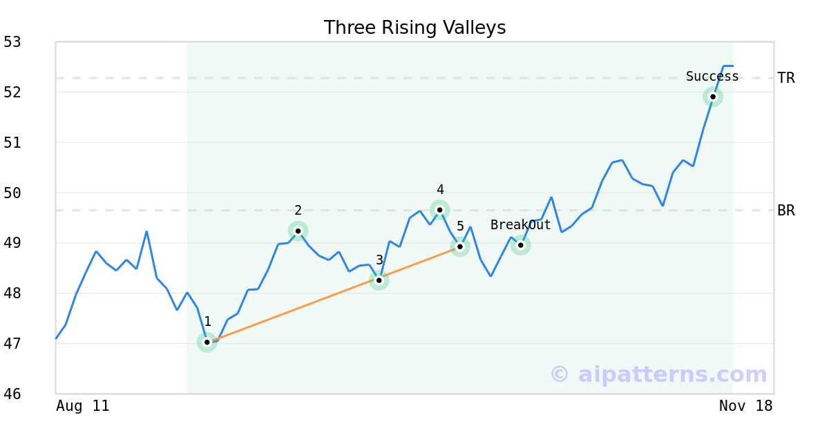 On October 07, 2025, A.I.dvisor detected a Three Rising Valleys Pattern (Bullish) for iShares MSCI Spain ETF (EWP, $48.92). On October 15, 2025, A.I.dvisor confirmed the Bullish pattern, setting a target price of $52.28. 27 days later, on November 11, 2025, EWP reached the target price resulting in a for traders who took a long position in the stock.