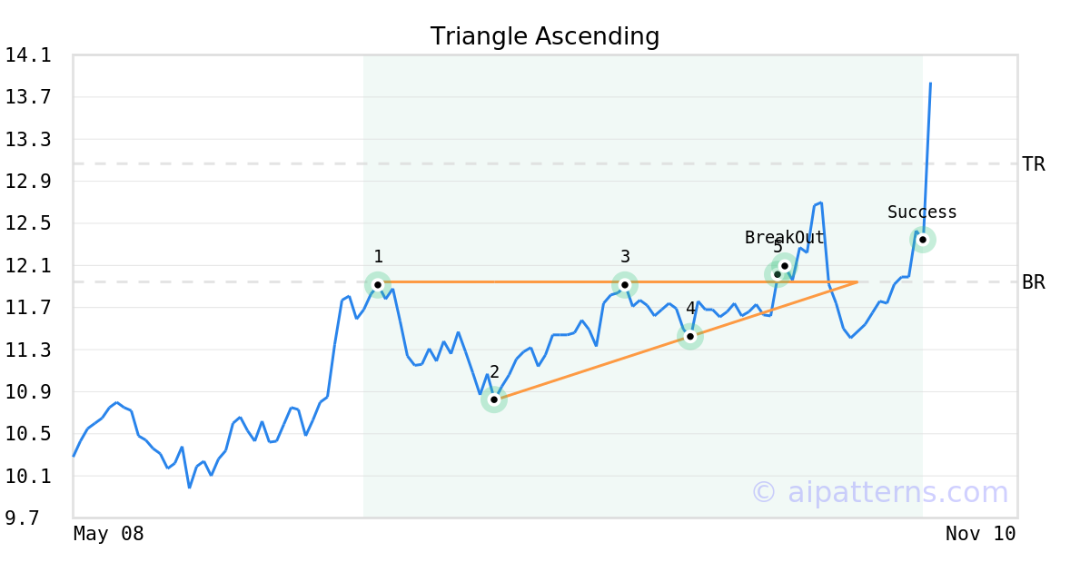 On September 26, 2025, A.I.dvisor detected a Triangle Ascending Pattern (Bullish) for Ford Motor Company (F, $12.01). On September 29, 2025, A.I.dvisor confirmed the Bullish pattern, setting a target price of $13.07. 24 days later, on October 23, 2025, F reached the target price resulting in a for traders who took a long position in the stock.