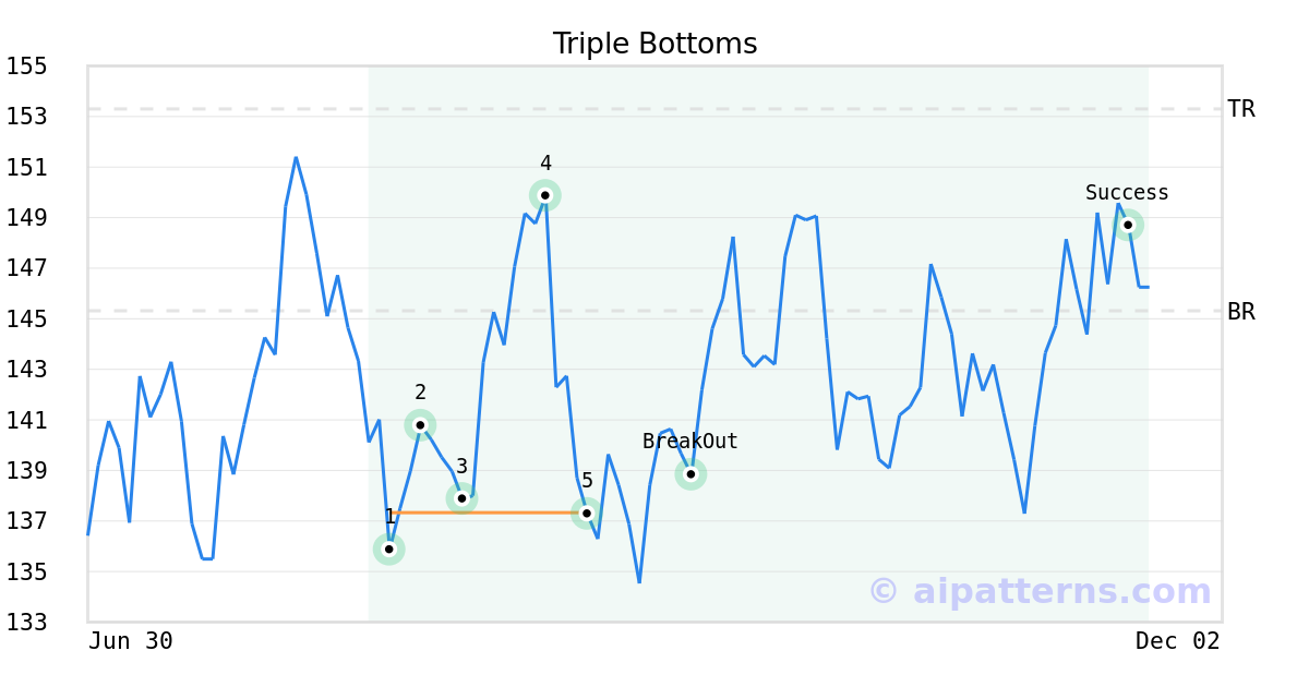 On September 08, 2025, A.I.dvisor detected a Triple Bottoms Pattern (Bullish) for Diamondback Energy (FANG, $137.28). On September 22, 2025, A.I.dvisor confirmed the Bullish pattern, setting a target price of $153.30. 58 days later, on November 19, 2025, FANG reached the target price resulting in a for traders who took a long position in the stock.