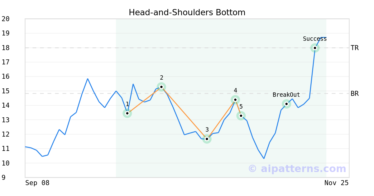 On October 30, 2025, A.I.dvisor detected a Head-and-Shoulders Bottom Pattern (Bullish) for Forte Biosciences Inc (FBRX, $13.27). On November 11, 2025, A.I.dvisor confirmed the Bullish pattern, setting a target price of $17.99. 7 days later, on November 18, 2025, FBRX reached the target price resulting in a +3 for traders who took a long position in the stock.