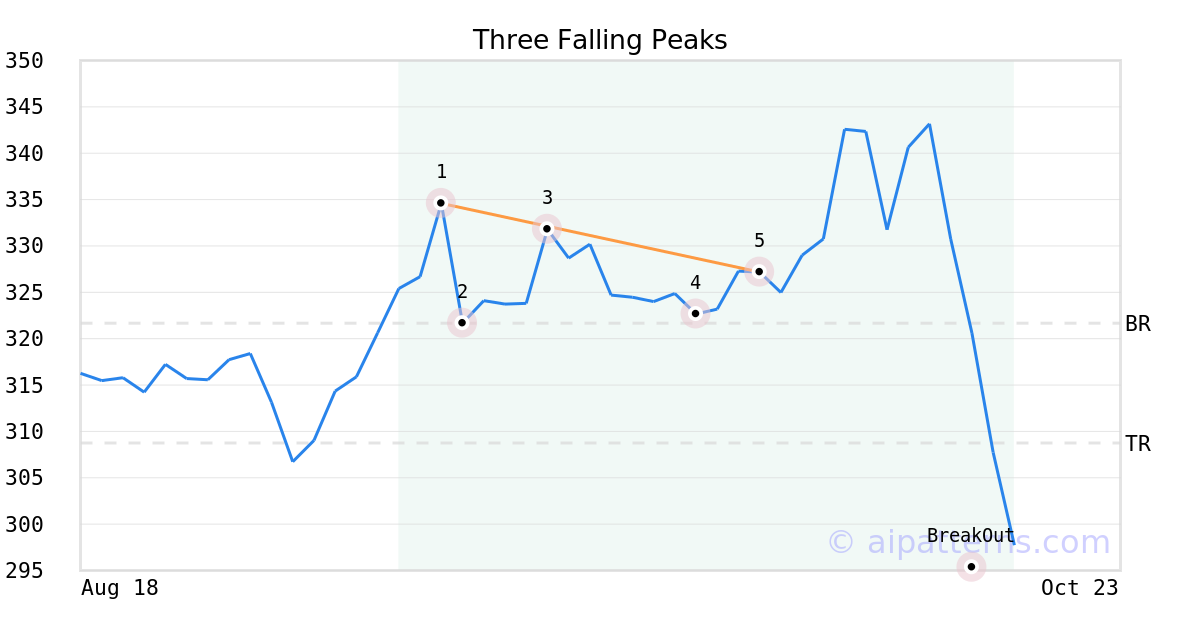 On October 02, 2025, A.I.dvisor detected a Three Falling Peaks Pattern (Bearish) for F5, Inc. (FFIV, $327.18). 14 days later, on October 16, 2025, A.I.dvisor confirmed the Bearish pattern, setting a target price of the stock. On October 16, 2025, the stock hit the target price of $308.75 – resulting in a gain for traders who shorted the stock on the pattern detection date.