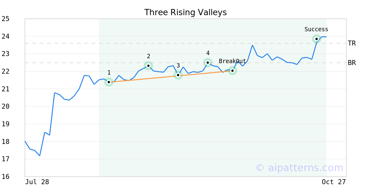On September 25, 2025, A.I.dvisor detected a Three Rising Valleys Pattern (Bullish) for Fulgent Genetics (FLGT, $22.03). On September 25, 2025, A.I.dvisor confirmed the Bullish pattern, setting a target price of $23.60. 25 days later, on October 20, 2025, FLGT reached the target price resulting in a for traders who took a long position in the stock.