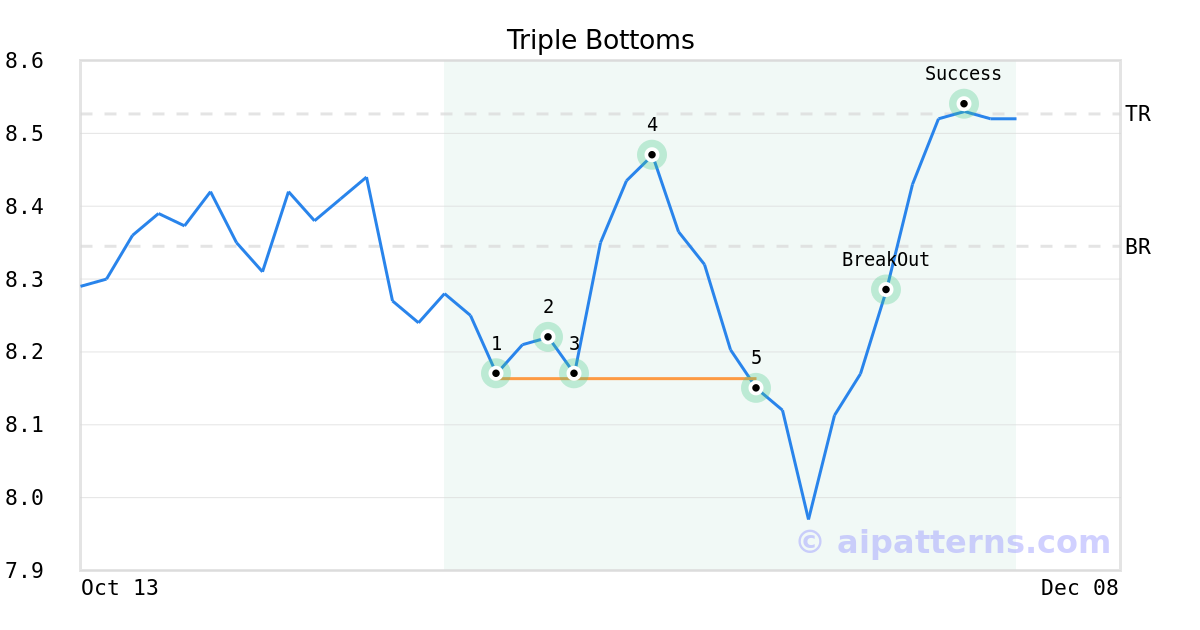 On November 18, 2025, A.I.dvisor detected a Triple Bottoms Pattern (Bullish) for Sprott Focus Trust (FUND, $8.15). On November 25, 2025, A.I.dvisor confirmed the Bullish pattern, setting a target price of $8.53. 6 days later, on December 01, 2025, FUND reached the target price resulting in a for traders who took a long position in the stock.