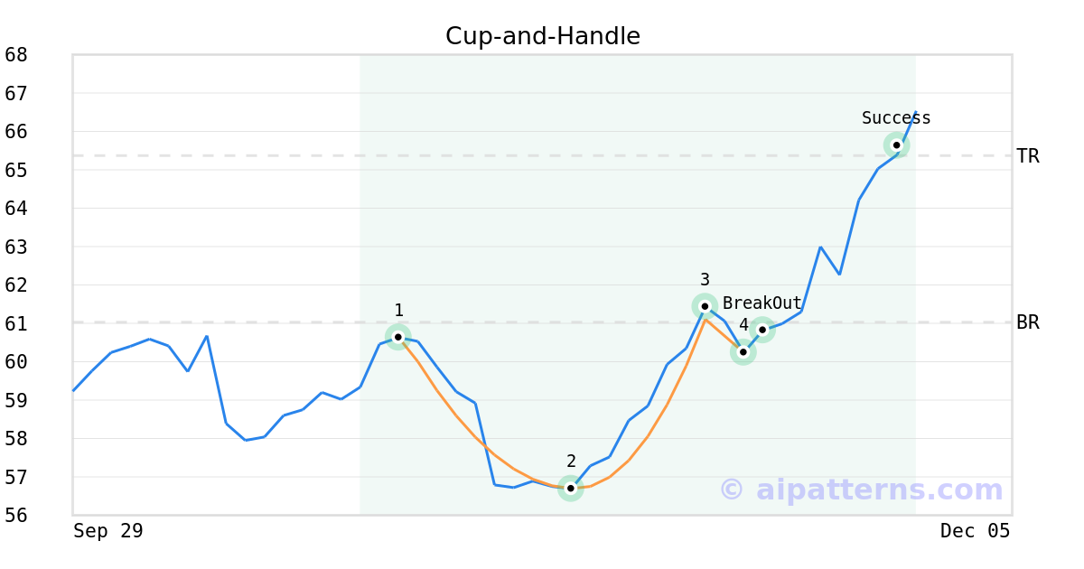 On November 17, 2025, A.I.dvisor detected a Cup-and-Handle Pattern (Bullish) for Greif (GEF, $60.24). On November 18, 2025, A.I.dvisor confirmed the Bullish pattern, setting a target price of $65.37. 10 days later, on November 28, 2025, GEF reached the target price resulting in a for traders who took a long position in the stock.