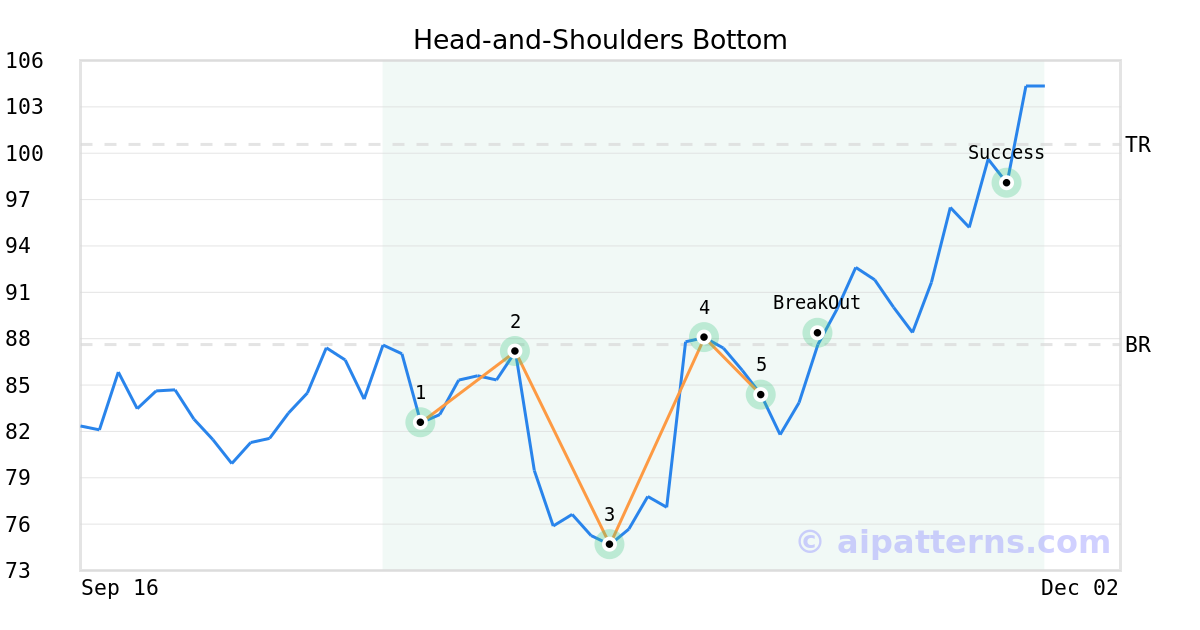 On November 05, 2025, A.I.dvisor detected a Head-and-Shoulders Bottom Pattern (Bullish) for Glaukos Corp (GKOS, $84.35). On November 10, 2025, A.I.dvisor confirmed the Bullish pattern, setting a target price of $100.57. 14 days later, on November 24, 2025, GKOS reached the target price resulting in a +1 for traders who took a long position in the stock.