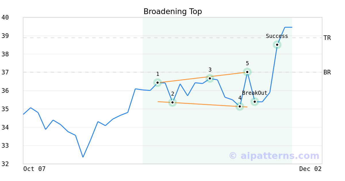 On November 18, 2025, A.I.dvisor detected a Broadening Top Pattern (Bullish) for Global-E Online Ltd (GLBE, $37.01). On November 19, 2025, A.I.dvisor confirmed the Bullish pattern, setting a target price of $38.89. 5 days later, on November 24, 2025, GLBE reached the target price resulting in a for traders who took a long position in the stock.