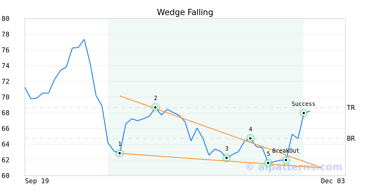 On November 17, 2025, A.I.dvisor detected a Wedge Falling Pattern (Bullish) for Green Brick Partners (GRBK, $61.60). On November 20, 2025, A.I.dvisor confirmed the Bullish pattern, setting a target price of $68.68. 5 days later, on November 25, 2025, GRBK reached the target price resulting in a +1 for traders who took a long position in the stock.