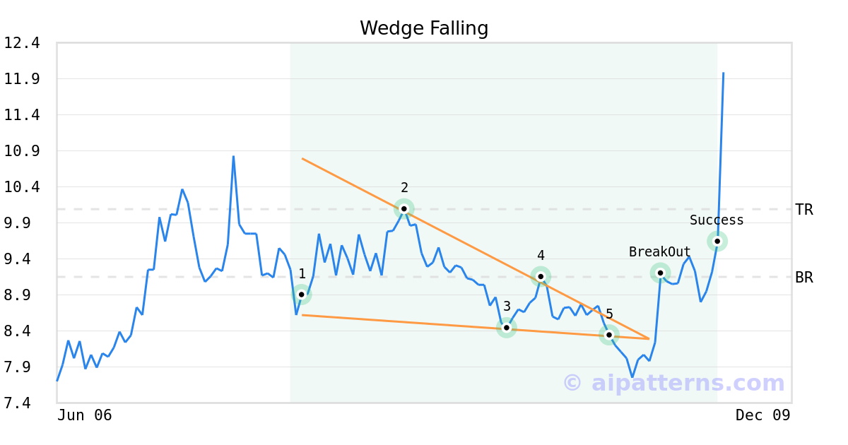 On October 24, 2025, A.I.dvisor detected a Wedge Falling Pattern (Bullish) for Herbalife Ltd (HLF, $8.34). On November 06, 2025, A.I.dvisor confirmed the Bullish pattern, setting a target price of $10.09. 14 days later, on November 20, 2025, HLF reached the target price resulting in a +1 for traders who took a long position in the stock.