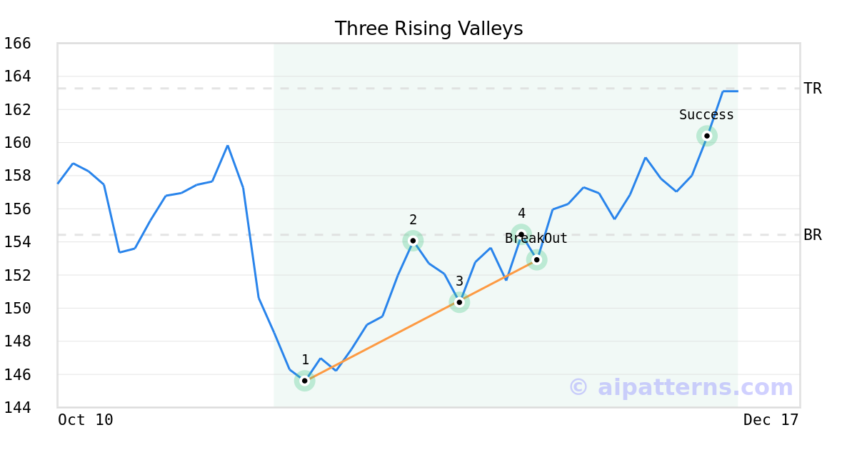 On November 24, 2025, A.I.dvisor detected a Three Rising Valleys Pattern (Bullish) for Intercontinental Exchange (ICE, $152.90). On November 24, 2025, A.I.dvisor confirmed the Bullish pattern, setting a target price of $163.27. 16 days later, on December 10, 2025, ICE reached the target price resulting in a for traders who took a long position in the stock.