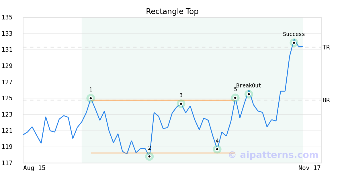 On October 22, 2025, A.I.dvisor detected a Rectangle Top Pattern (Bullish) for InterContinental Hotels Group Plc (IHG, $125.03). On October 27, 2025, A.I.dvisor confirmed the Bullish pattern, setting a target price of $131.31. 14 days later, on November 10, 2025, IHG reached the target price resulting in a for traders who took a long position in the stock.