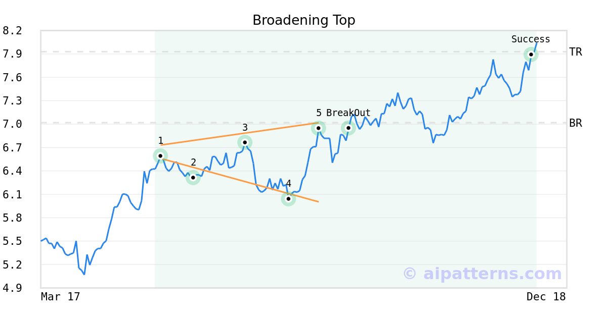 On August 12, 2025, A.I.dvisor detected a Broadening Top Pattern (Bullish) for Itau Unibanco Banco Holding SA (ITUB, $6.95). On August 27, 2025, A.I.dvisor confirmed the Bullish pattern, setting a target price of $7.93. 97 days later, on December 02, 2025, ITUB reached the target price resulting in a +1 for traders who took a long position in the stock.