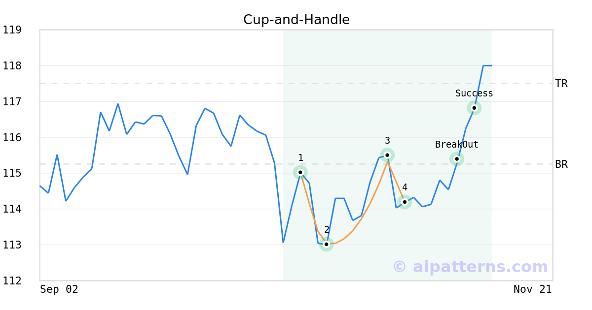 On October 30, 2025, A.I.dvisor detected a Cup-and-Handle Pattern (Bullish) for iShares Global Financials ETF (IXG, $114.19). On November 07, 2025, A.I.dvisor confirmed the Bullish pattern, setting a target price of $117.50. 4 days later, on November 11, 2025, IXG reached the target price resulting in a for traders who took a long position in the stock.