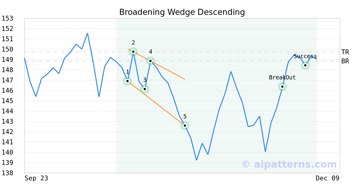 On October 31, 2025, A.I.dvisor detected a Broadening Wedge Descending Pattern (Bullish) for iShares US Basic Materials ETF (IYM, $142.58). On November 25, 2025, A.I.dvisor confirmed the Bullish pattern, setting a target price of $149.75. 7 days later, on December 02, 2025, IYM reached the target price resulting in a for traders who took a long position in the stock.
