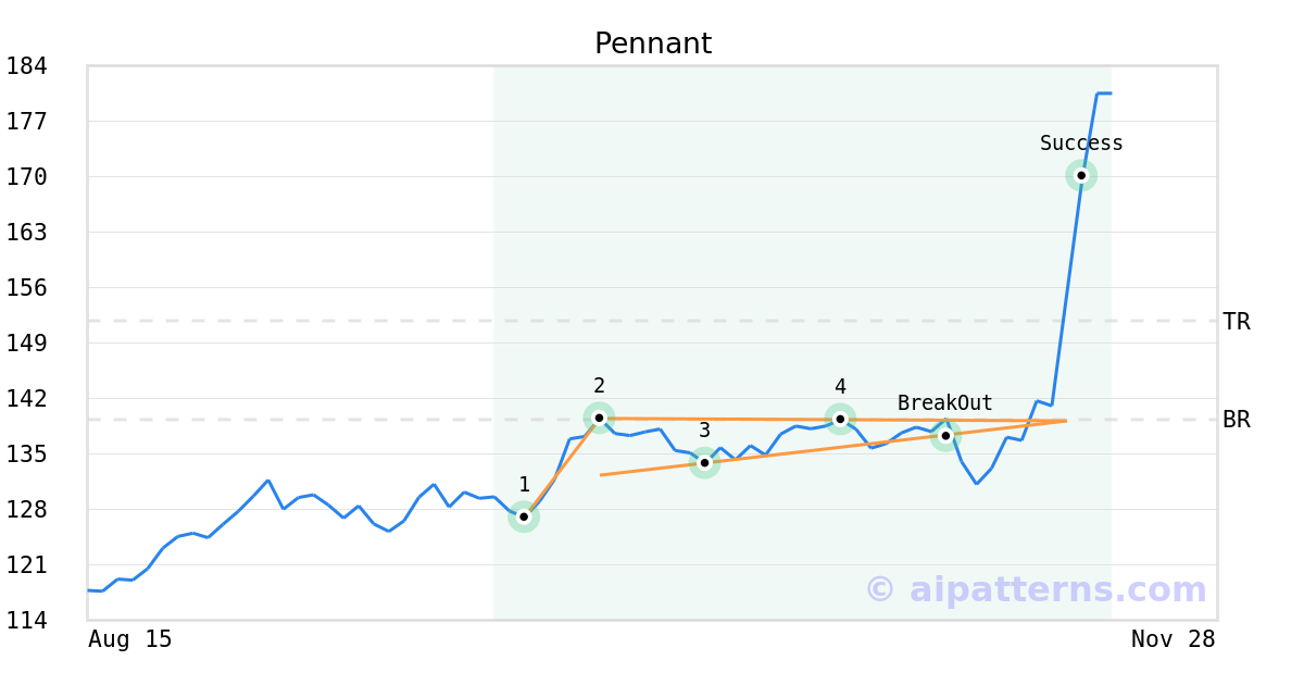 On November 05, 2025, A.I.dvisor detected a Pennant Pattern (Bullish) for Jazz Pharmaceuticals plc (JAZZ, $137.22). On November 05, 2025, A.I.dvisor confirmed the Bullish pattern, setting a target price of $151.81. 12 days later, on November 17, 2025, JAZZ reached the target price resulting in a +2 for traders who took a long position in the stock.