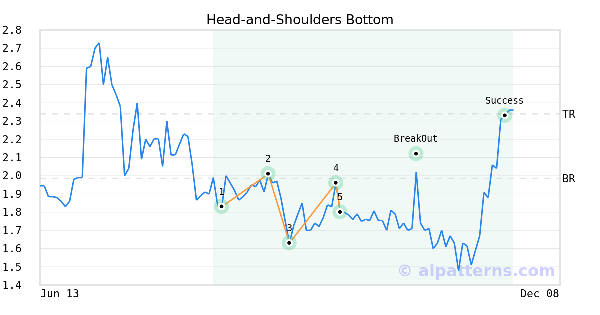 On September 25, 2025, A.I.dvisor detected a Head-and-Shoulders Bottom Pattern (Bullish) for Jowell Global Ltd (JWEL, $1.80). On October 21, 2025, A.I.dvisor confirmed the Bullish pattern, setting a target price of $2.34. 29 days later, on November 19, 2025, JWEL reached the target price resulting in a +2 for traders who took a long position in the stock.