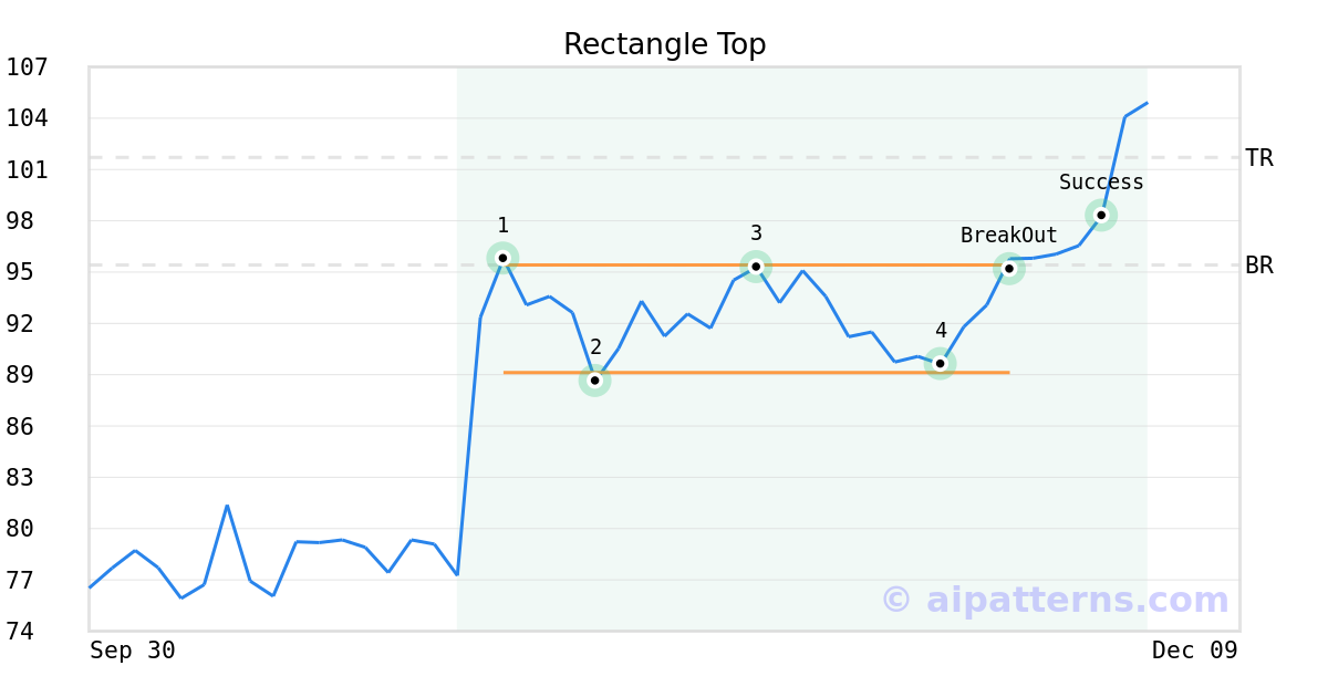 On November 25, 2025, A.I.dvisor detected a Rectangle Top Pattern (Bullish) for Kaiser Aluminum Corp (KALU, $95.17). On November 25, 2025, A.I.dvisor confirmed the Bullish pattern, setting a target price of $101.71. 7 days later, on December 02, 2025, KALU reached the target price resulting in a for traders who took a long position in the stock.