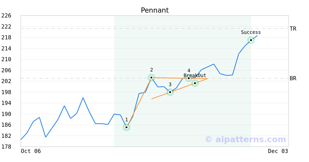 On November 13, 2025, A.I.dvisor detected a Pennant Pattern (Bullish) for Krystal Biotech (KRYS, $201.21). On November 13, 2025, A.I.dvisor confirmed the Bullish pattern, setting a target price of $221.24. 12 days later, on November 25, 2025, KRYS reached the target price resulting in a for traders who took a long position in the stock.