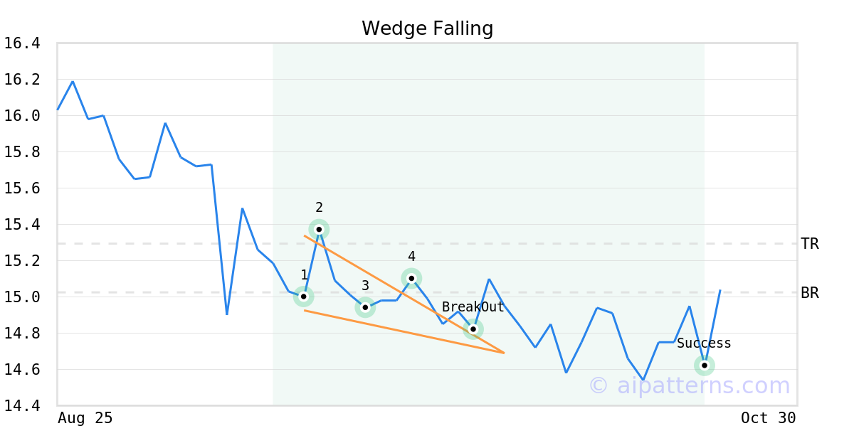 On October 02, 2025, A.I.dvisor detected a Wedge Falling Pattern (Bullish) for Limoneira Co (LMNR, $14.75). On October 02, 2025, A.I.dvisor confirmed the Bullish pattern, setting a target price of $15.29. 21 days later, on October 23, 2025, LMNR reached the target price resulting in a for traders who took a long position in the stock.
