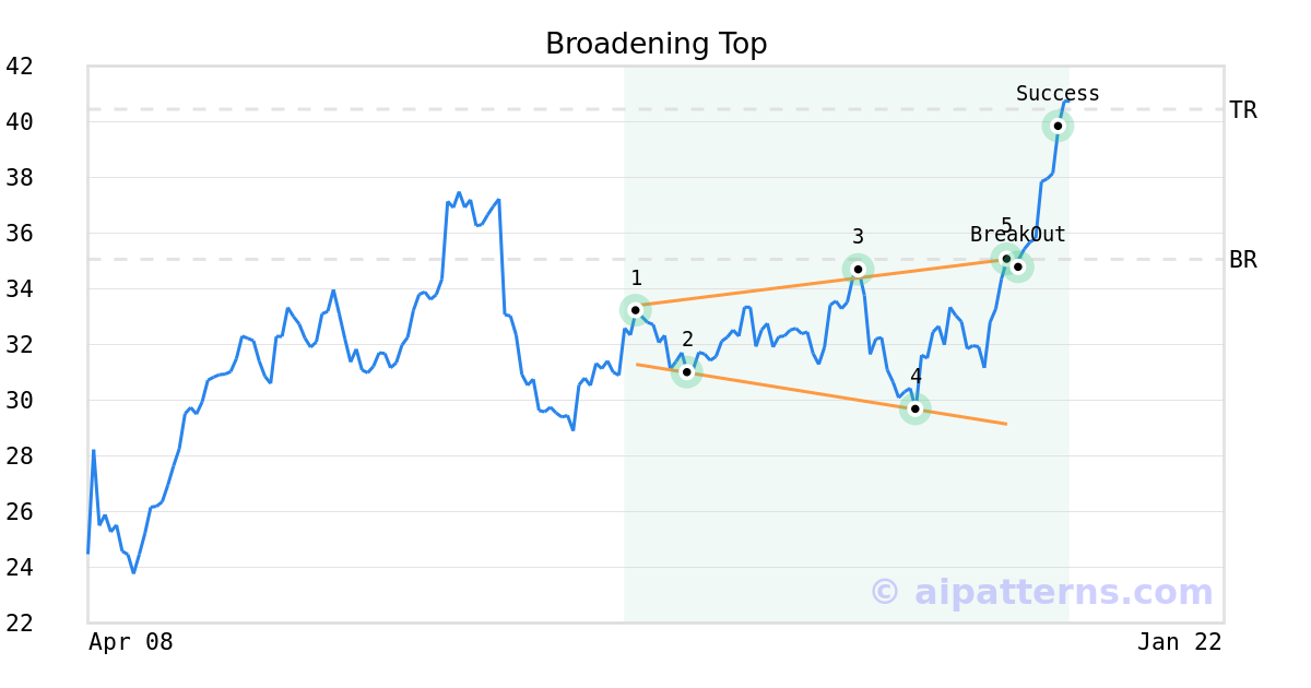 On November 26, 2025, A.I.dvisor detected a Broadening Top Pattern (Bullish) for Southwest Airlines Co (LUV, $35.06). On December 01, 2025, A.I.dvisor confirmed the Bullish pattern, setting a target price of $40.45. 9 days later, on December 10, 2025, LUV reached the target price resulting in a +1 for traders who took a long position in the stock.