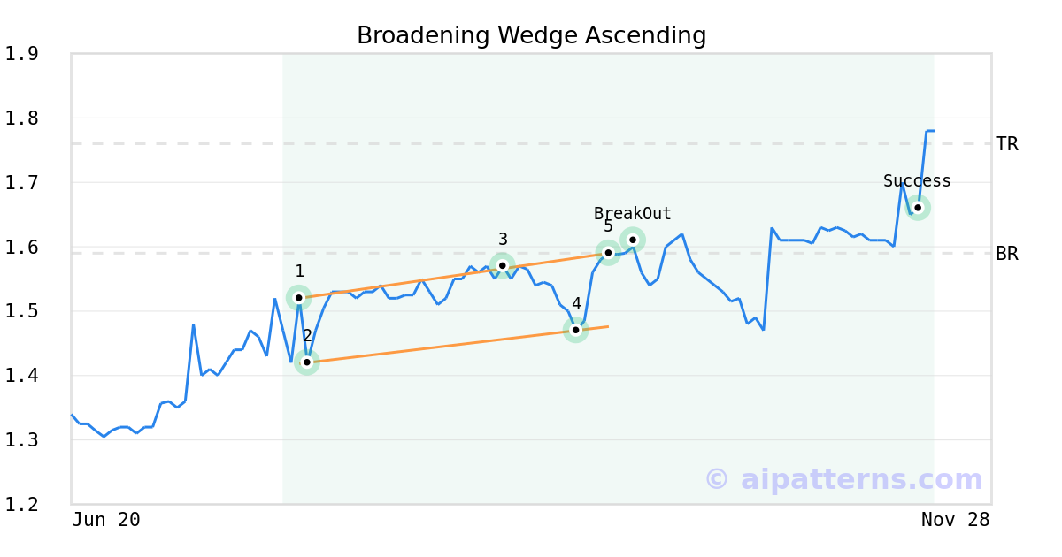On September 26, 2025, A.I.dvisor detected a Broadening Wedge Ascending Pattern (Bullish) for LAVA Therapeutics NV (LVTX, $1.59). On September 29, 2025, A.I.dvisor confirmed the Bullish pattern, setting a target price of $1.76. 49 days later, on November 17, 2025, LVTX reached the target price resulting in a for traders who took a long position in the stock.